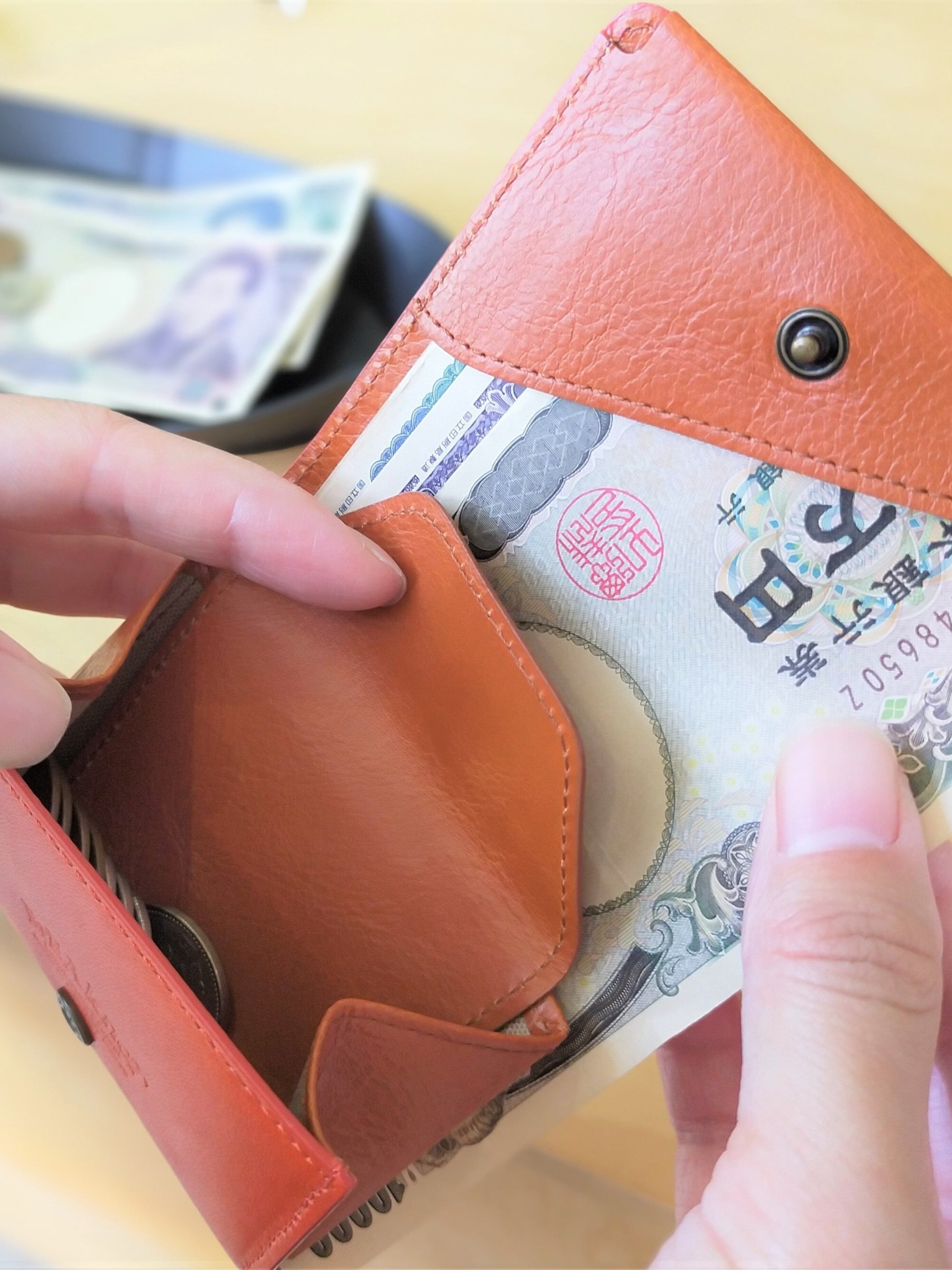 革のダイヤモンドと称される「コードバン」をメインボディに採用したプレミアムなミニ財布です。 ※在庫ありの品は2営業日以内に発送致します。【流通量が非常に少ない素材の為、一旦売切れますと次回販売まで時間を要します。お早めにご検討頂けましたら幸いです。】 とにかく小さくて使い易い2つ折り財布が欲しい。 そんな想いで作りました。ミニなウォレット「Minitto(ミニット)」は 『日本最小クラスの2つ折り財布』です。 お札:約20枚 カード:5~6枚 小銭:30枚程度 ワイシャツの胸ポケットに収まるほど小さいですが、一般的な2つ折り財布とほぼ変わらない収納力です。 サイズ 縦8cm 横9cm 厚2cm 素材 本体:馬革(コードバン)/ レーデルオガワ社製 内側:国産牛革タンニンレザー、綿オックス生地 生産国 日本(香川県 東かがわ市) 【ご注文について】 *本品は在庫販売となりますので、2営業日以内に発送致します。(土日祝・年末年始・GW・お盆時期は出荷業務を休業致します) *本商品はBASE規約により後払い決済をご利用頂けない場合がございます。 【お気を付けください】 *本革を使用しております。革にはトラ目と呼ばれるシワ模様のようなもの、シボ(凹凸)や血管の痕が表情として現れています。自然界を生きた証でもあり、革製品を楽しんで頂きたいポイントのひとつです。 *製造工程上ミシン跡がつくことがあります。 *お札押さえ部分(三角パーツ)は少し外へはみ出るように設計しております。 *製品の品質向上の為、予告なしに一部仕様を変更する場合もございます。 【コードバンについて】 *レーデルオガワ社製のアニリン染め(水染め)コードバンです。 *天然皮革を染色しているため1点1点表情が異なり、パソコン処理の性質上、実際の色と異なる場合もございます。ご注文前に素材の特性をご理解頂き、ご注文をお願い致します。 *使用しております コードバンは水に対して非常に注意が必要な素材です。予めご了承下さい。 *コードバンは細かい傷が容易に着きやすい素材です。傷を気にされる方はお気を付け下さい。傷が着いてしまった場合は、コードバン専用のクリームをご使用頂くと傷あとが目立ちにくくなります。 *デリケートクリームなどの水分を多く含むケアクリーム類は革の変質を起こす恐れが有りますので、ご使用をお控えください。