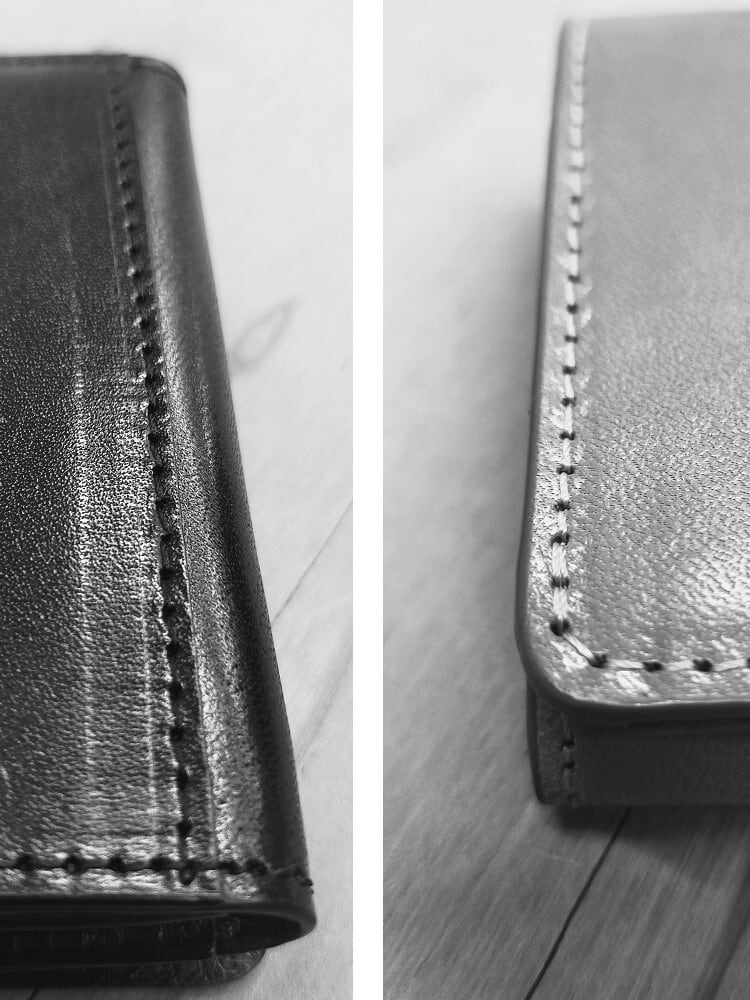 *お札を包み込む構造上マチは少し外へはみ出るように設計しております。