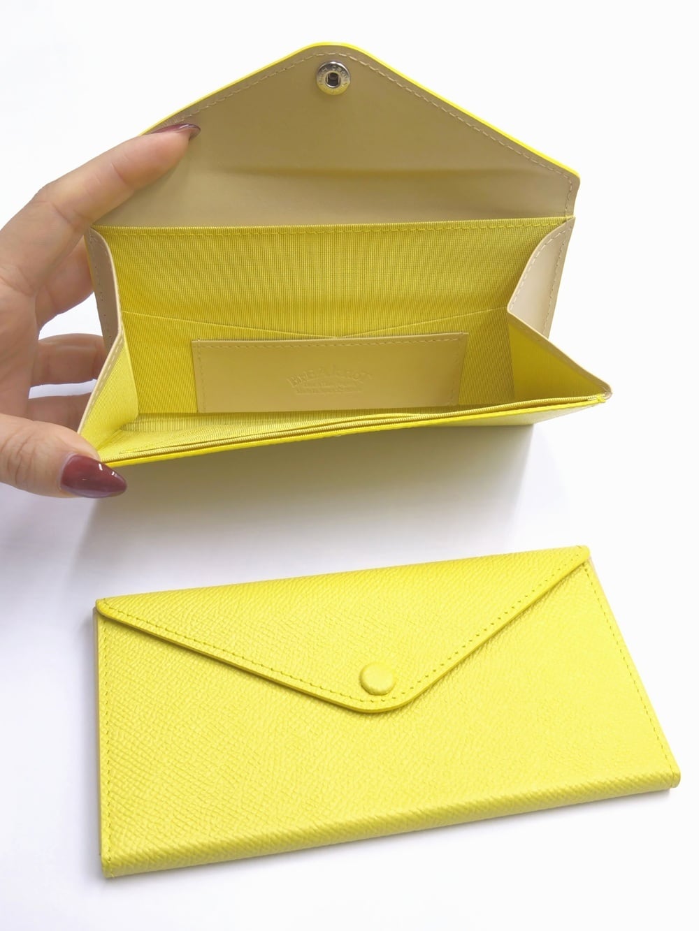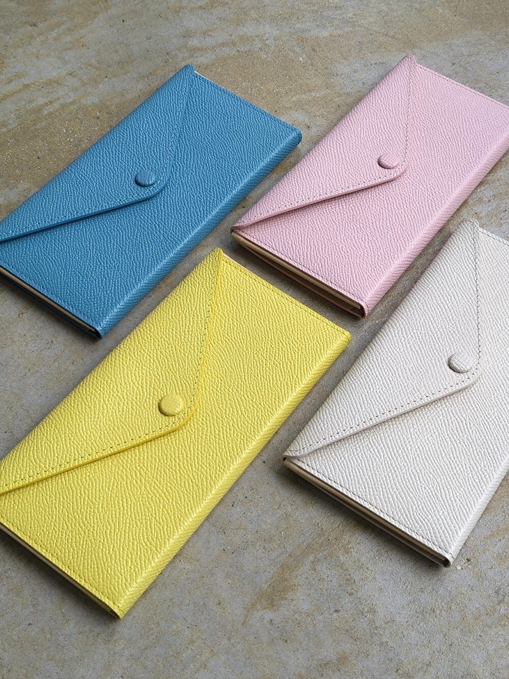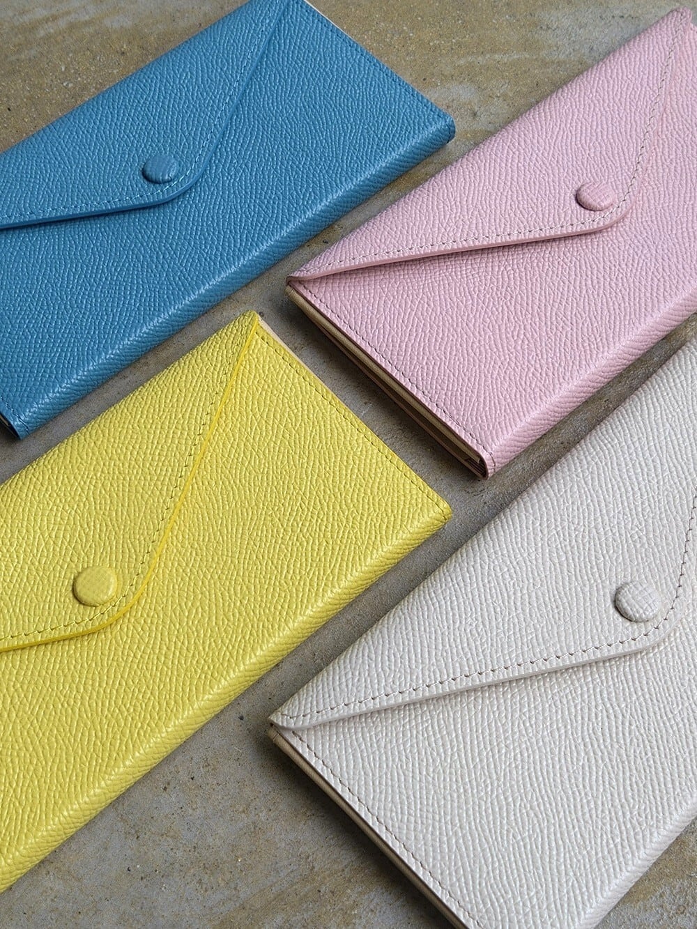 Slotto(エンボスレザー)/ ミニ長財布 / 小さい長財布 薄い 薄型 お札折らない 使いやすい 牛革 レディース くるみボタン ミニマル シンプル デザイン 革職人 日本製: | BrEAknoT ブレイクノット