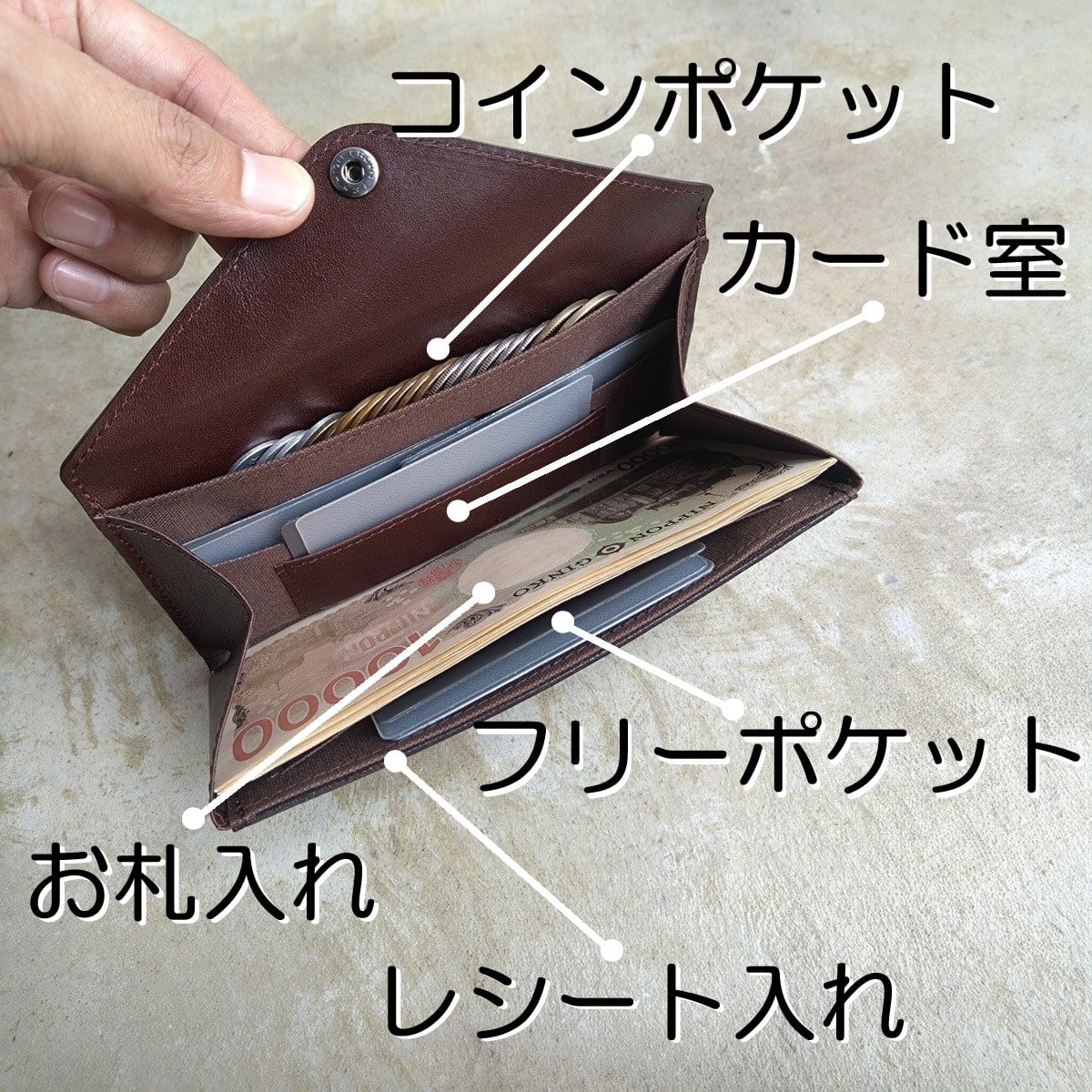 一般的な長財布よりも一回り小さい長財布ですが、必要な収納力は十分に確保。